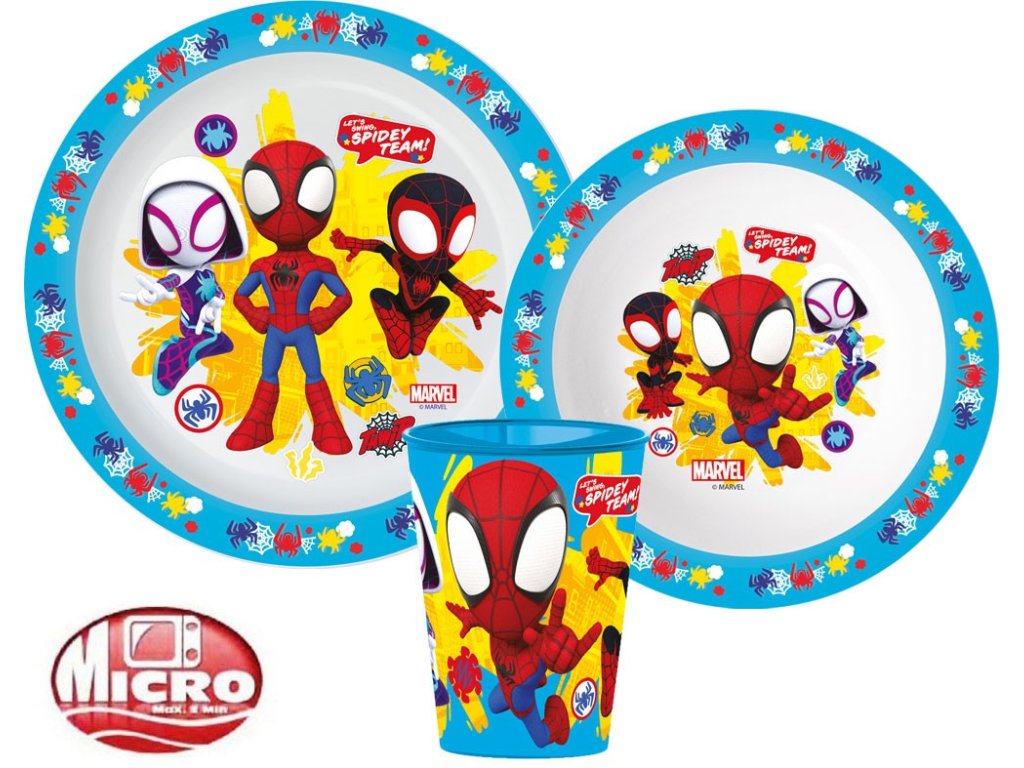 Spiderman Spidey Team dinner set, micro plastic set, with cup 260 ml