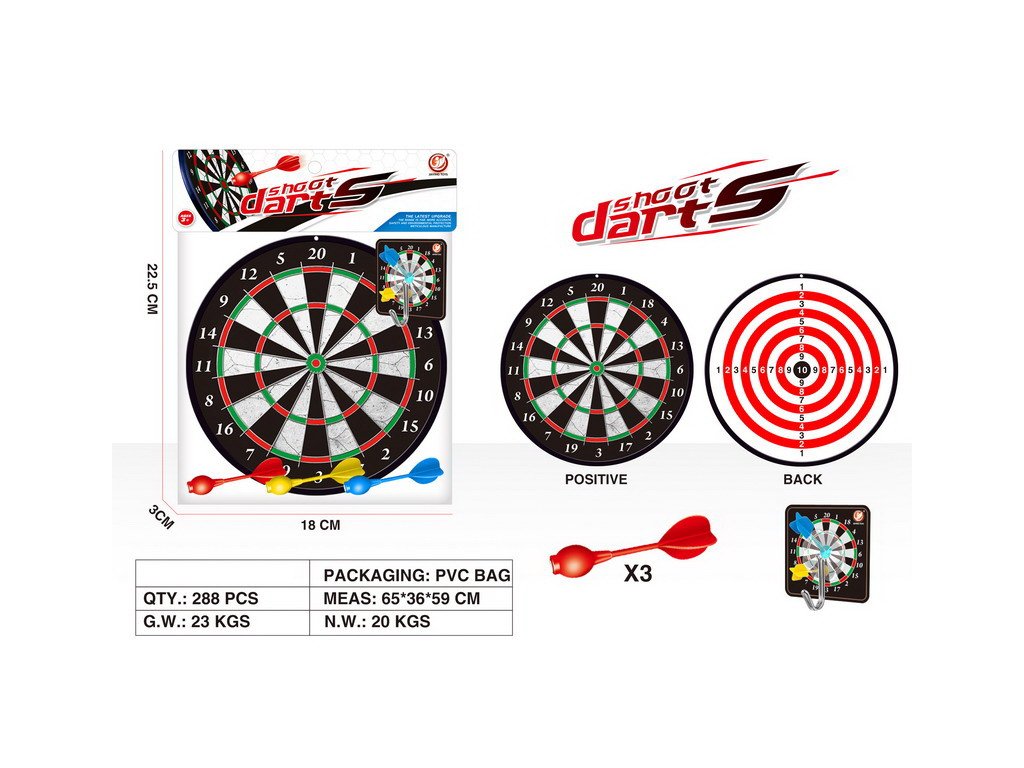 Terč oboustranný magnetický se 3 šipkami. Průměr terče 15 cm.
