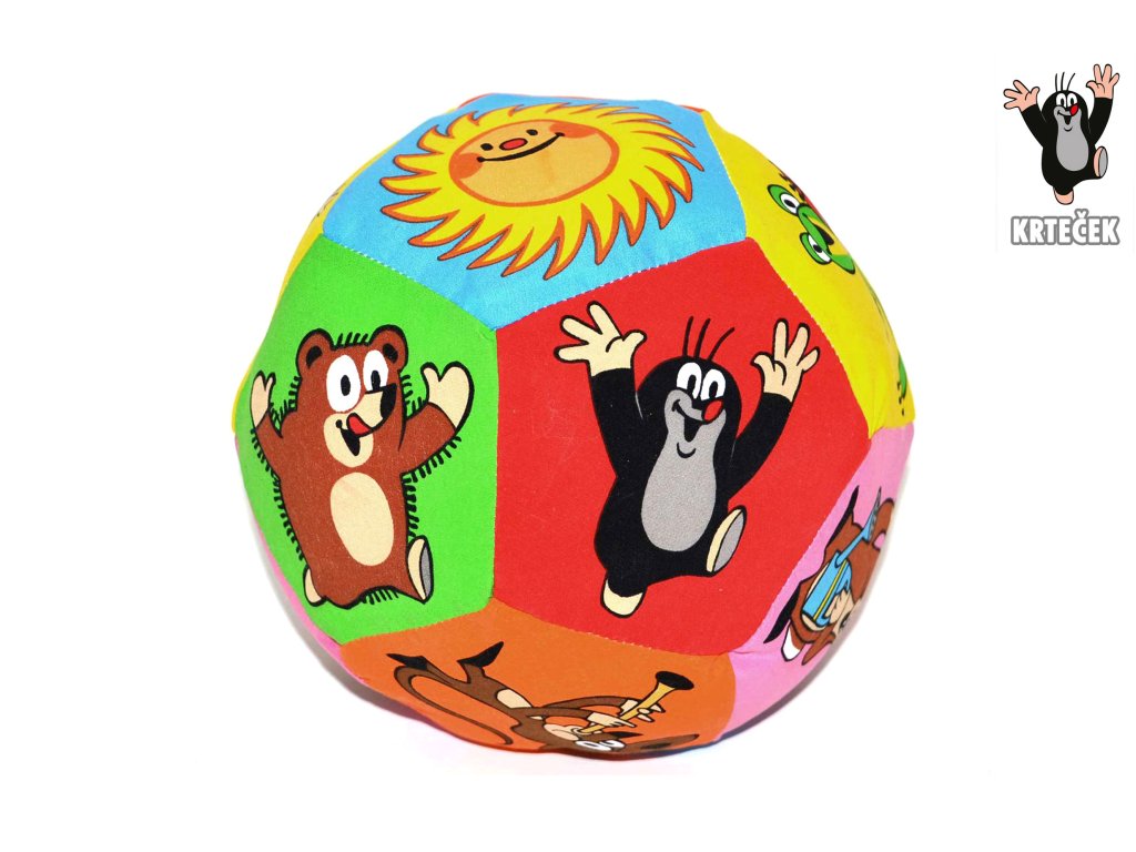 Textilní míček Krtek. Textilní míček pro nejmenší. Chrastící. Po celé ploše míče jsou jednotlivě umístěny barevné obrázky s motivem Krtečka. Velikost 15 cm.Doplňkové parametry