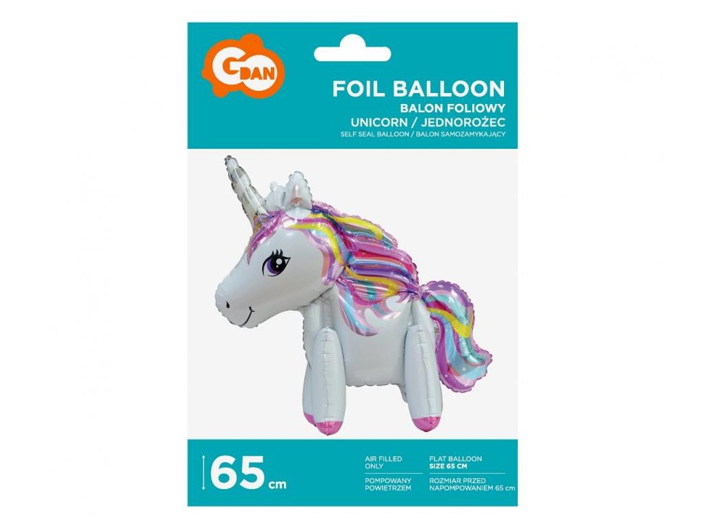 Unicorn Standing, foil balloon 65 cmFoil balloon, which can be filled with helium or air.