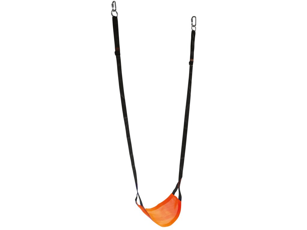 Dětská červená houpačka, vyrobená z nylonových a polyesterových vláken. Houpačka je prodyšná neklouzavá a odolná. Je skladná a snadno se přenáší. Kovová spona umožňuje přizpůsobení délky lana podle velikosti dítěte.Doplňkové parametry