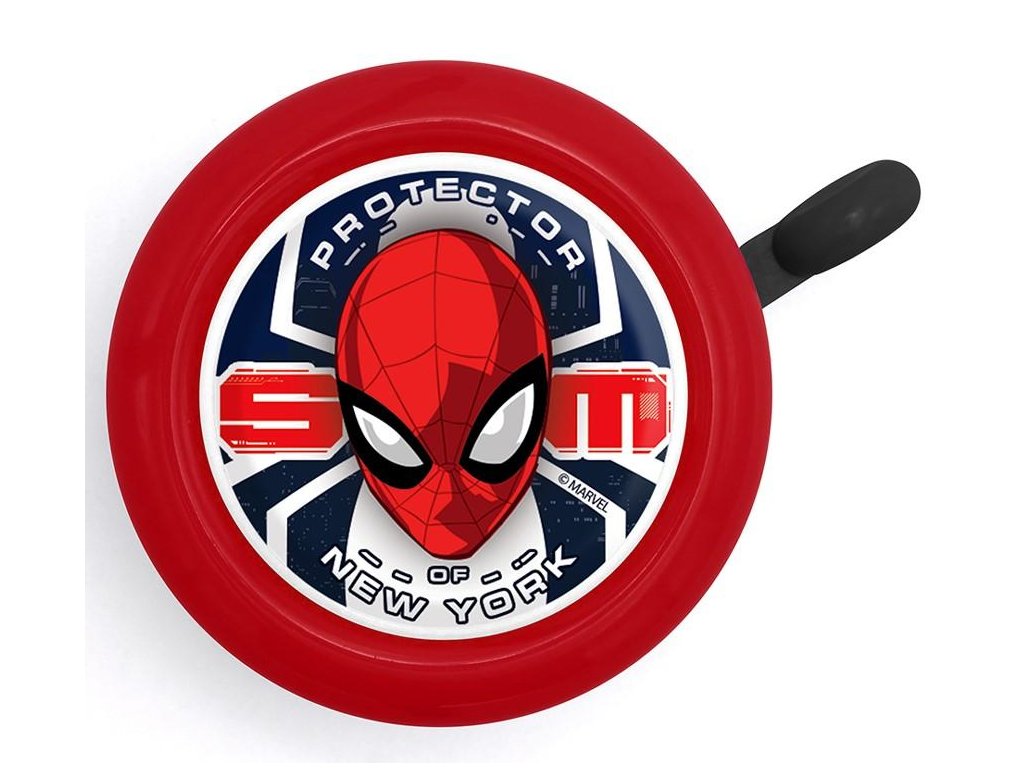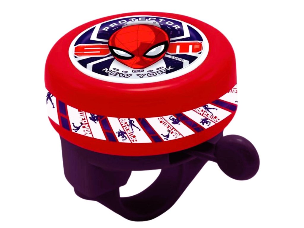Zvonek na kolo s motivem Spiderman. Připevnění na řidítka. Materiál: kov - plast. Rozměr: průměr 5,5, cm. Barva: červená.Doplňkové parametry
